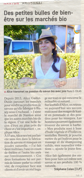 Article du jsl sur la participation de la savonnerie au marché des producteurs de Nanton