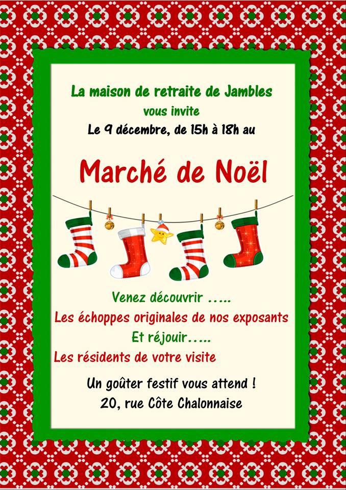 – marché de Noël de la maison de retraite de Jambles samedi 09/12 entre 15h et 18h