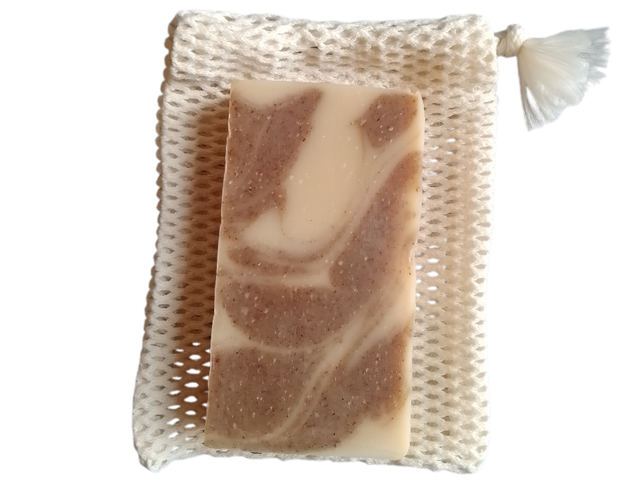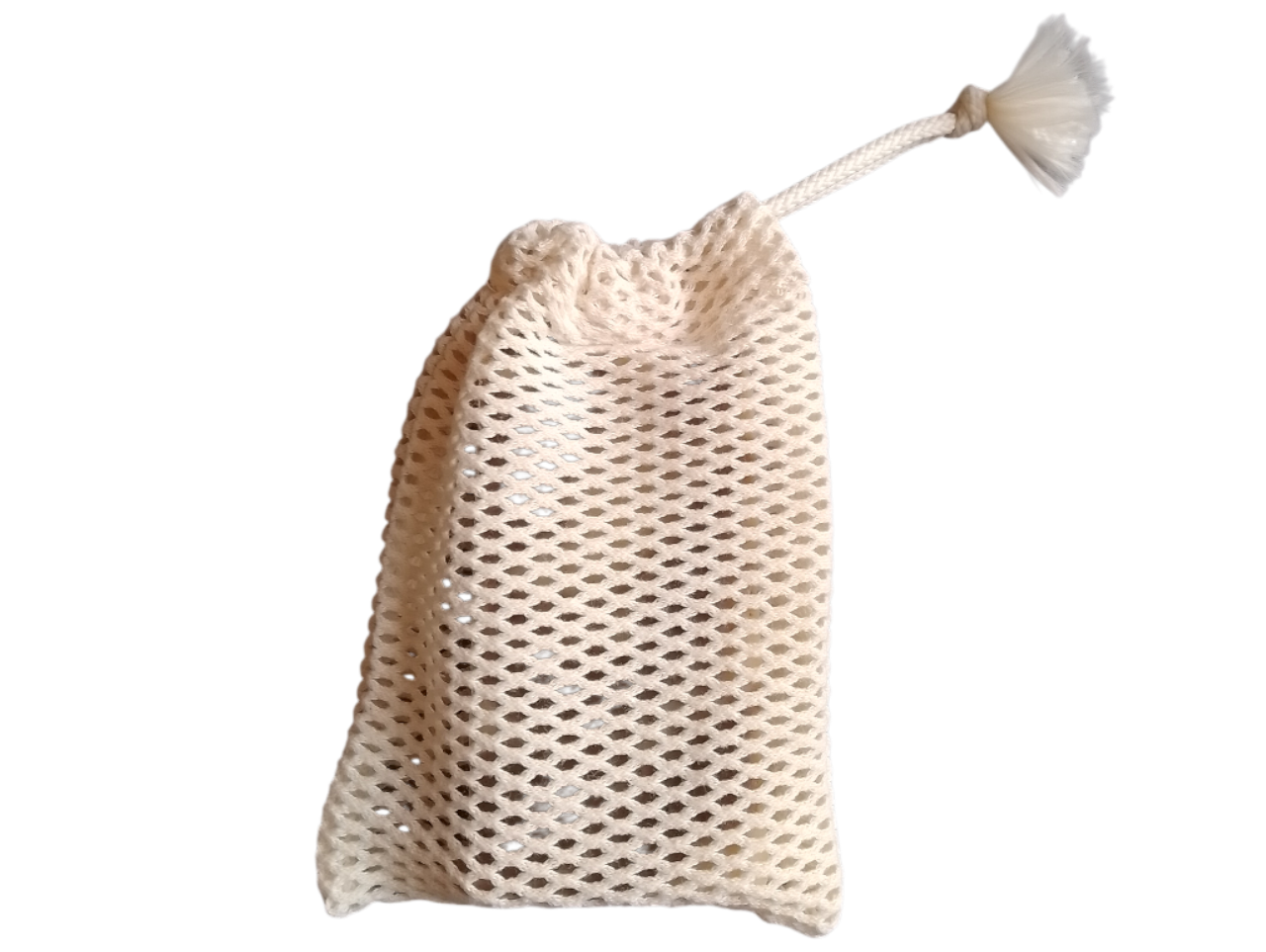 Ce filet anti-gaspi pour chutes de savons est composé de coton bio. Il est fabriqué localement par nos soins (votre savonnière est aussi couturière !). Rangez y vos chutes de savons, fermez votre filet et utilisez le comme une fleur de douche… Vous pouvez aussi parfaitement vous en servir avec un savon entier !
